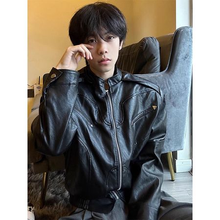 Men's Retro Jacket Solid Color Stand Collar Coat