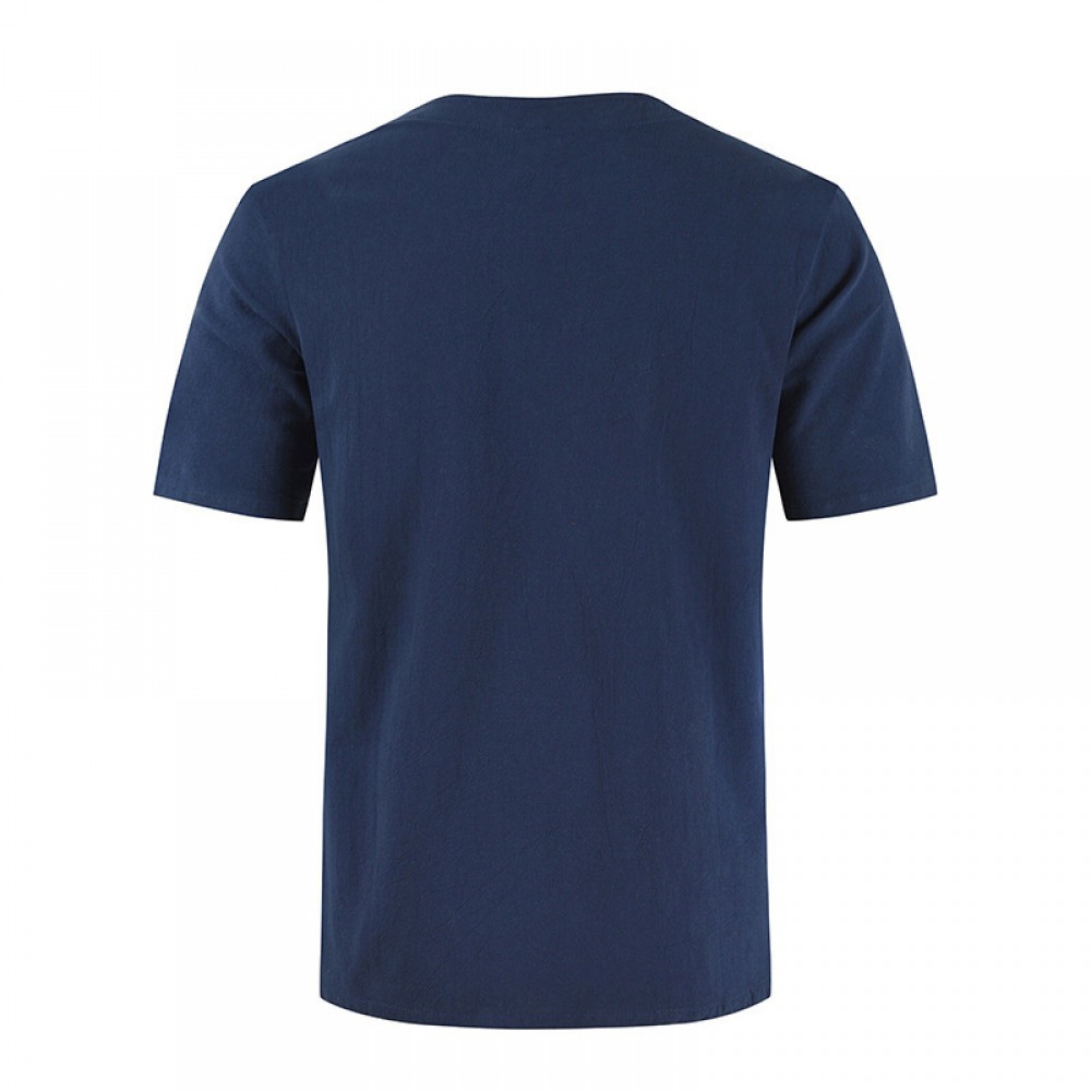 New Summer Men's Casual Short-Sleeved T-Shirt Cotton and Linen Lace Casual Fashion Mens T-Shirt