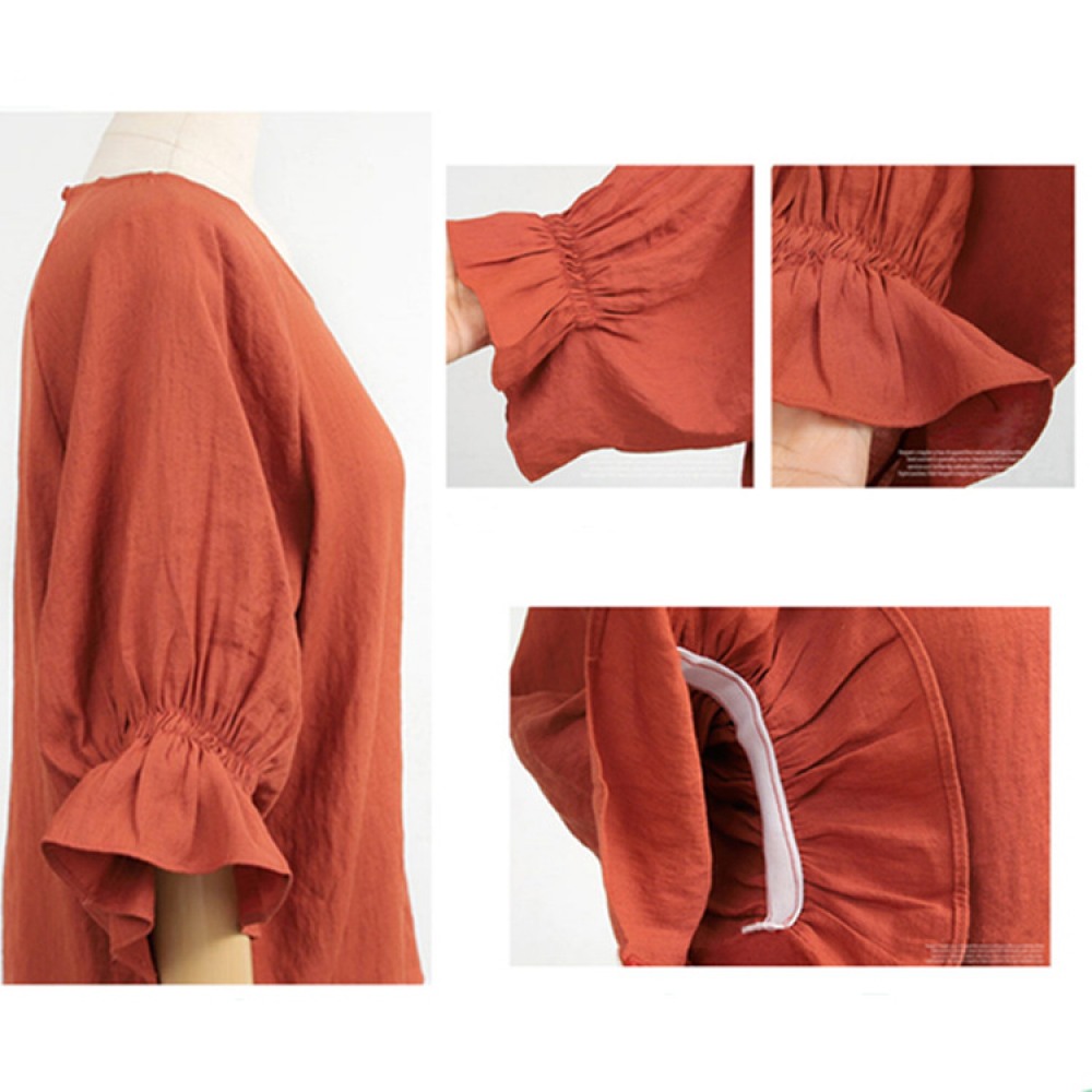 Summer New Style Cotton and Linen Short-Sleeved Shirt Hot Style Bundle Fold Mid-Sleeved T-Shirt Women