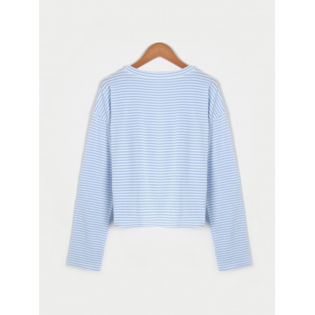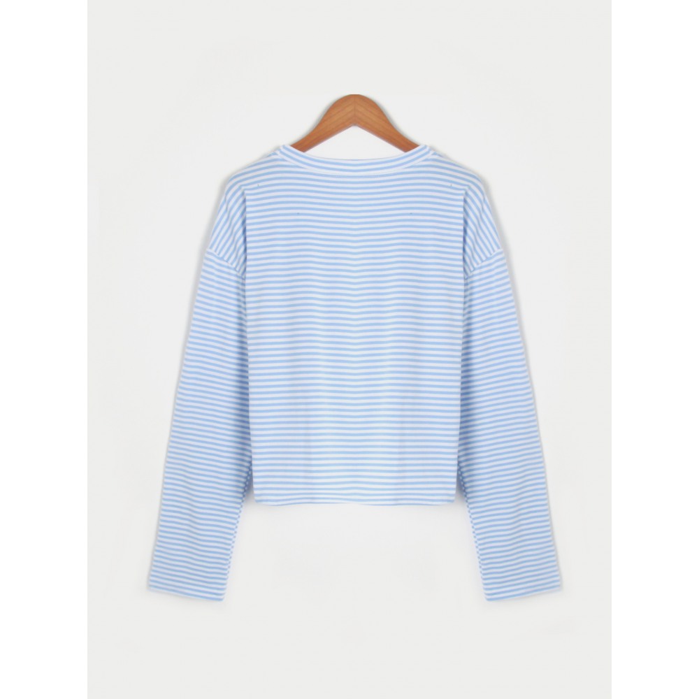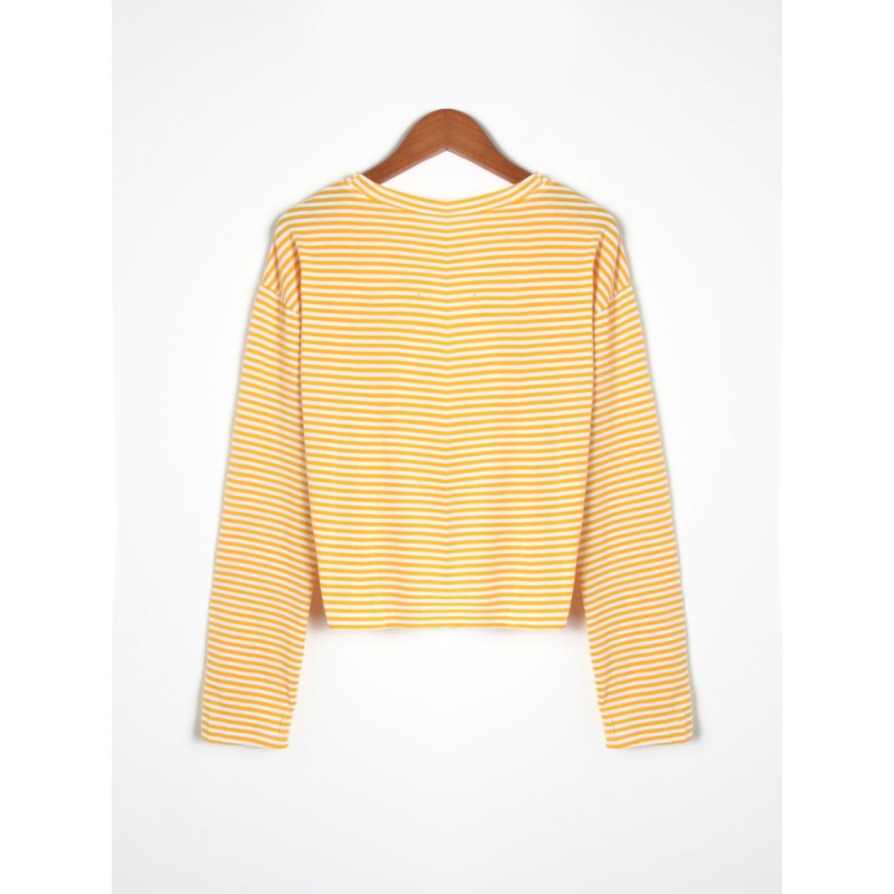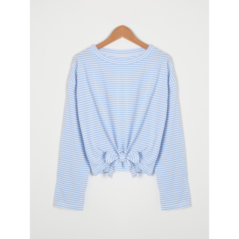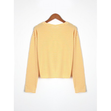 All-Match Loose Round Neck Striped Tie Long Sleeve T-Shirt