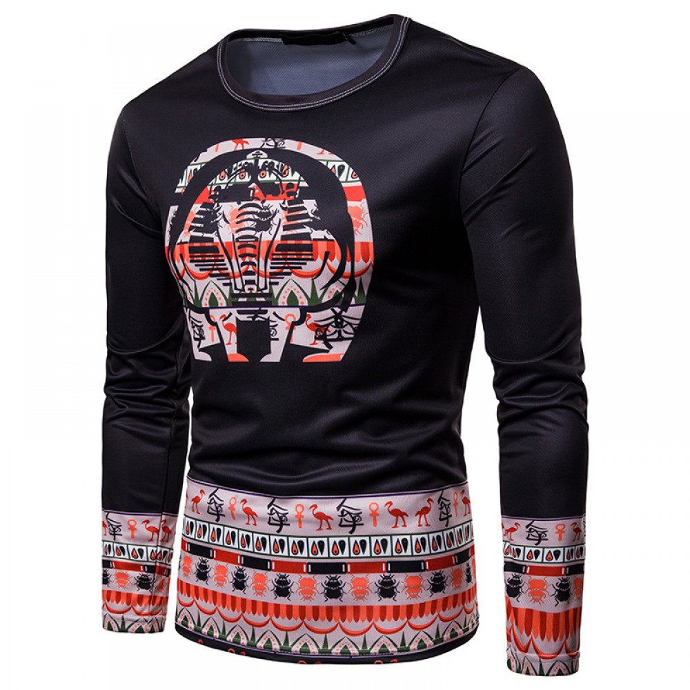New Men's Large Size 3D Classical Pattern Printing High Neck Long Sleeve T-Shirt Bottoming Shirt