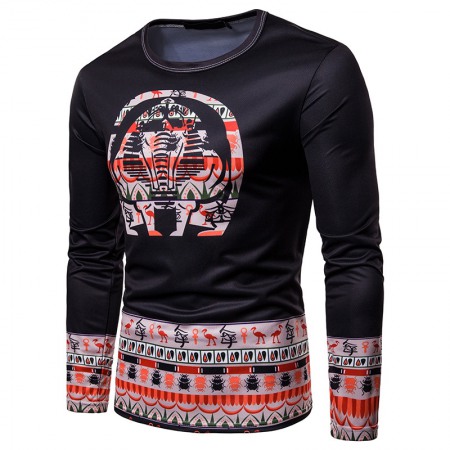 Men's 3D Cartoon Character Printing Long-Sleeved Round Neck T-Shirt