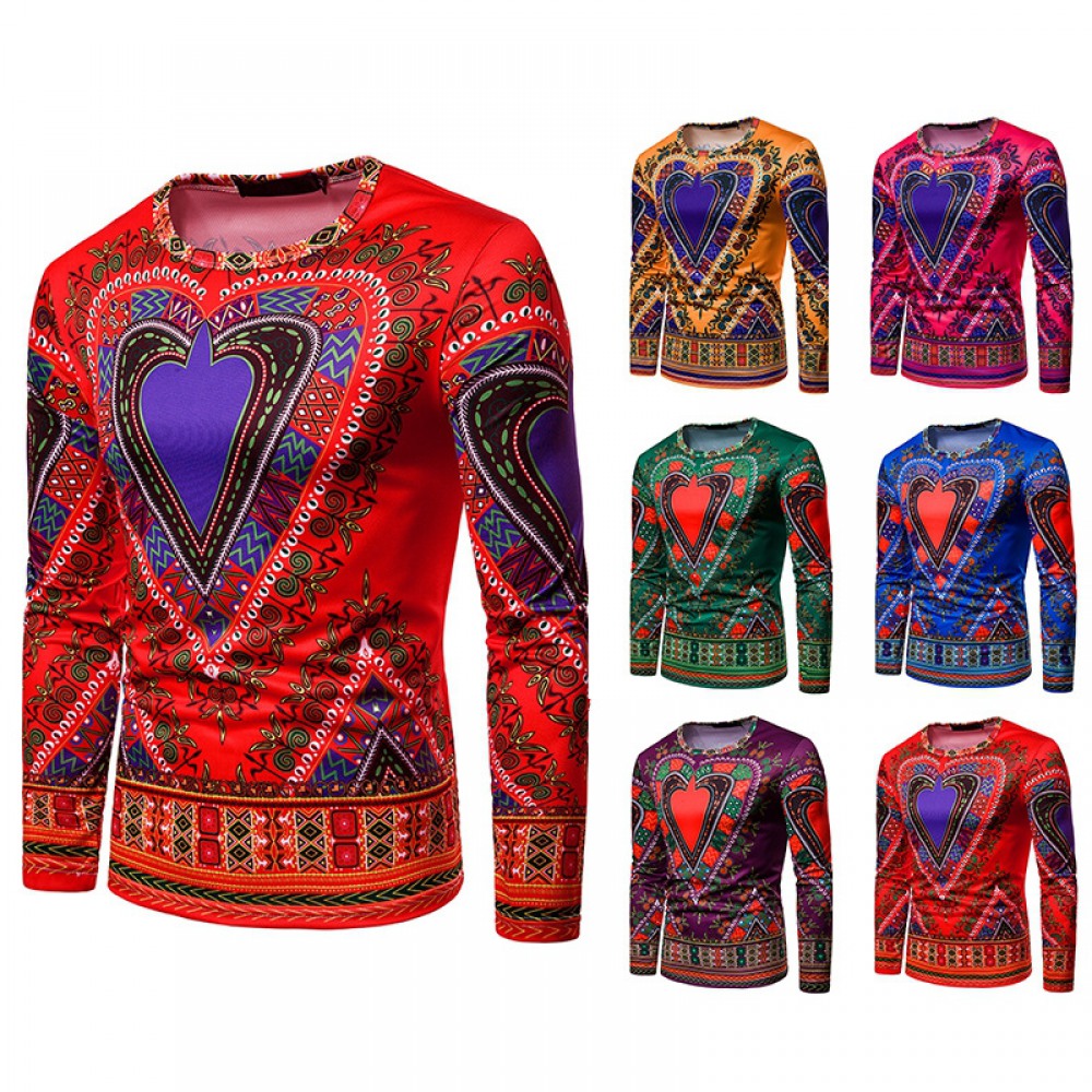 Men's 3D Love Picture Round Neck Long Sleeve T-Shirt