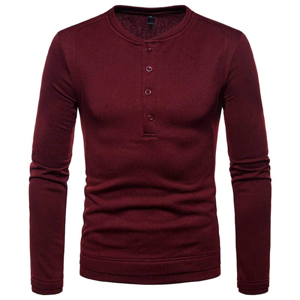 Men's Plus Size Plus Velvet Warm Henley Collar Long-Sleeved T-Shirt Bottoming Shirt