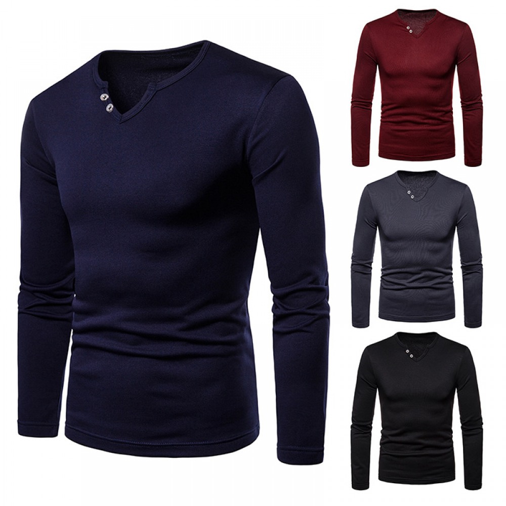 Men's Plus Size Velvet Warm V-Neck Long-Sleeved T-Shirt Base Shirt