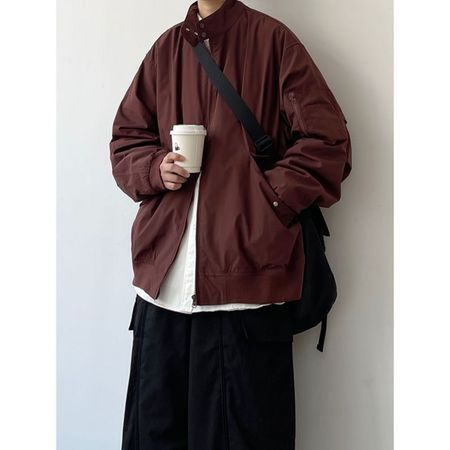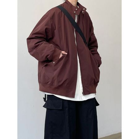 Solid Color Loose Drop Shoulder Stand Collar Sweatshirt Men's Zipper Jacket