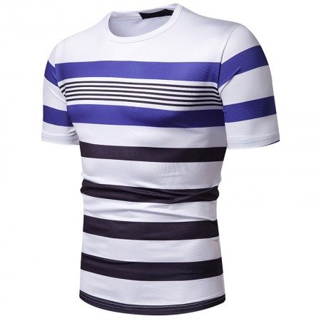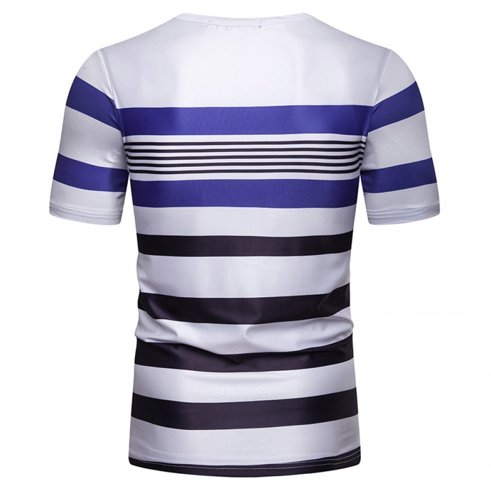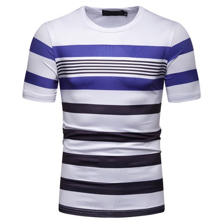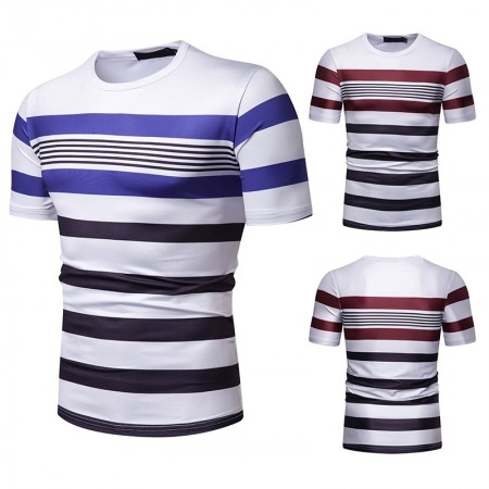 Men's Short-Sleeved T-Shirt Mens Contrast Striped Slim Casual T-Shirt