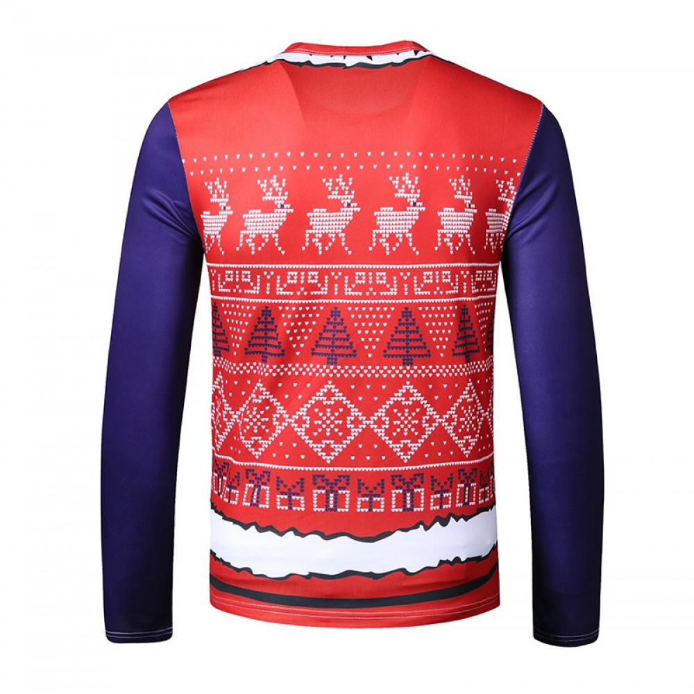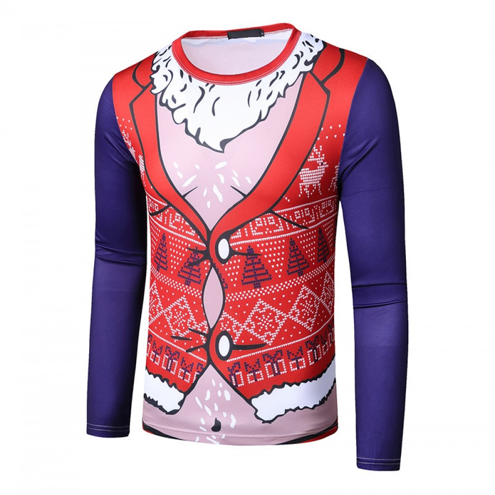 New 3D Personality Printing Fashion Men's Christmas Button Pattern Long-Sleeved T-Shirt