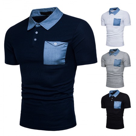 New Fashion Denim Stitching Men's Lapel Short Sleeve Polo