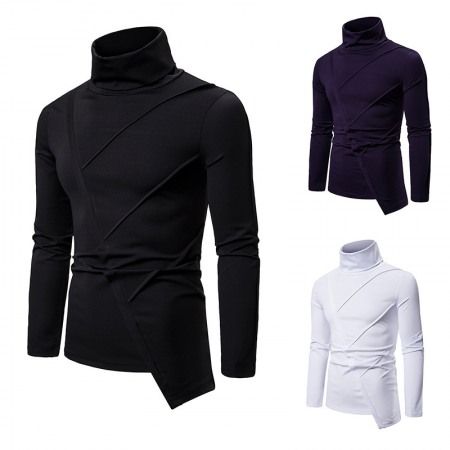 New Men's Dark Slim High Collar Irregular Mens Long Sleeve T-Shirt