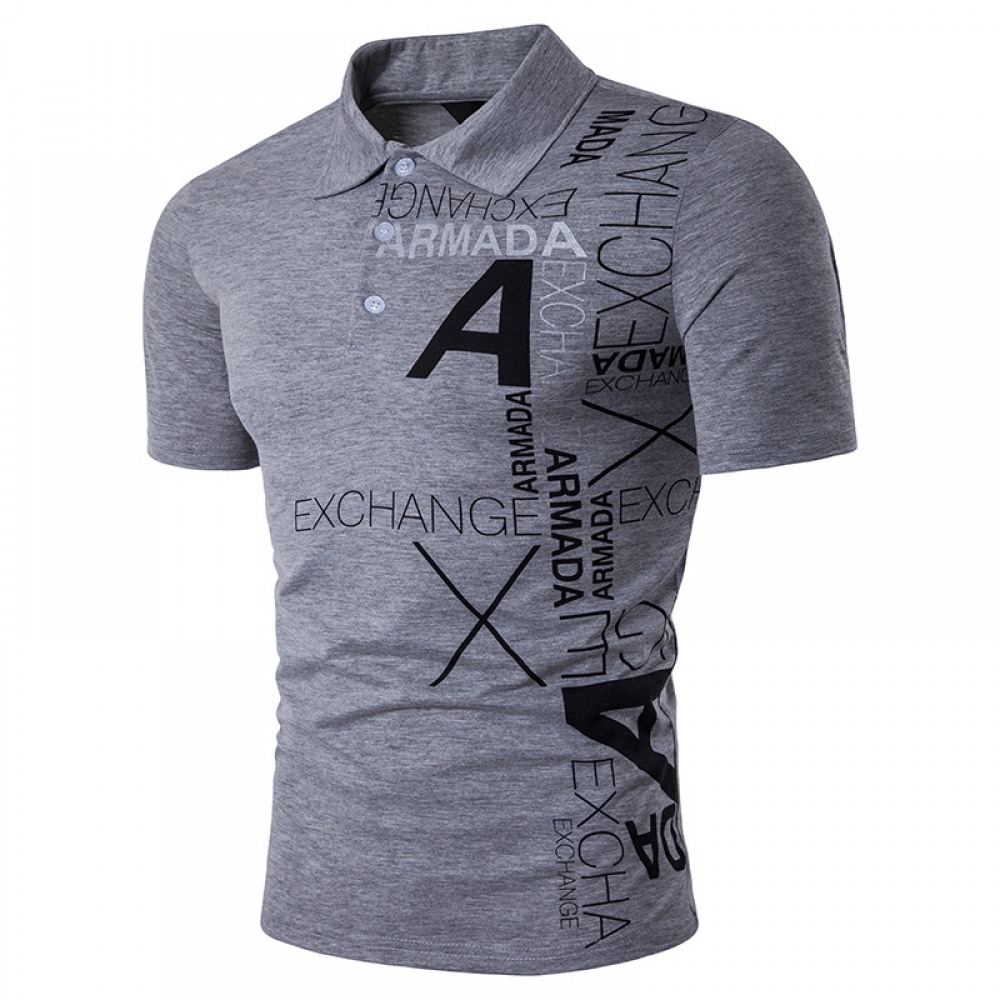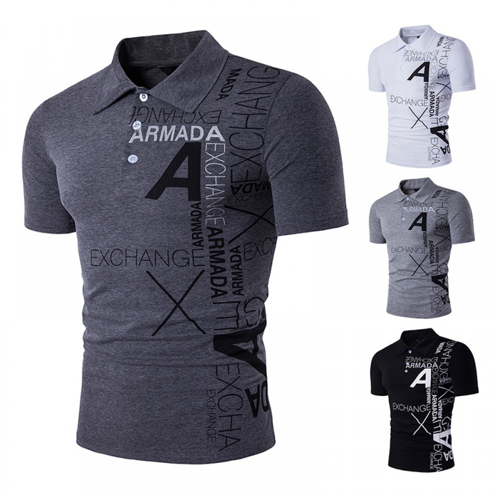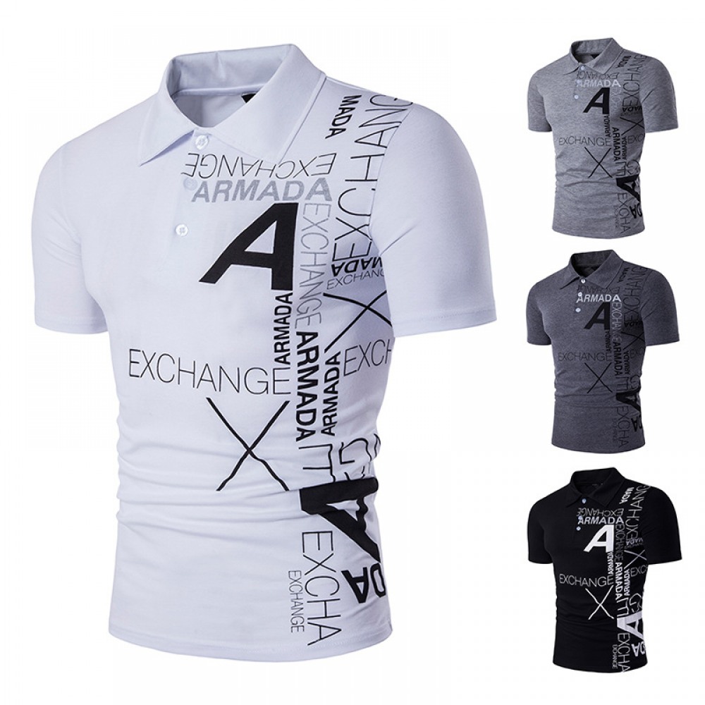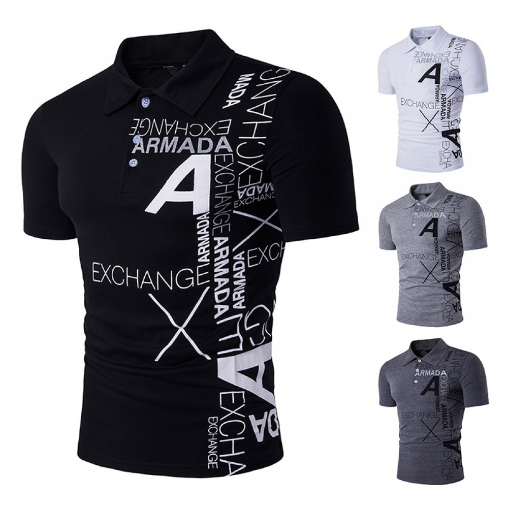 New Men's Style A Letter Printing Lapel Short-Sleeved Large Size T-Shirt