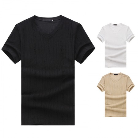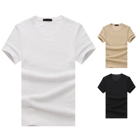 Men's T-Shirt V-Neck Solid Color Shiny Nightclub Design Dynamic Fashion Sexy Mens Short Sleeve T-Shirt