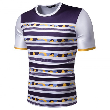 New Summer Men's Short-Sleeved T-Shirt Men's Contrast Striped Slim Casual T-Shirt