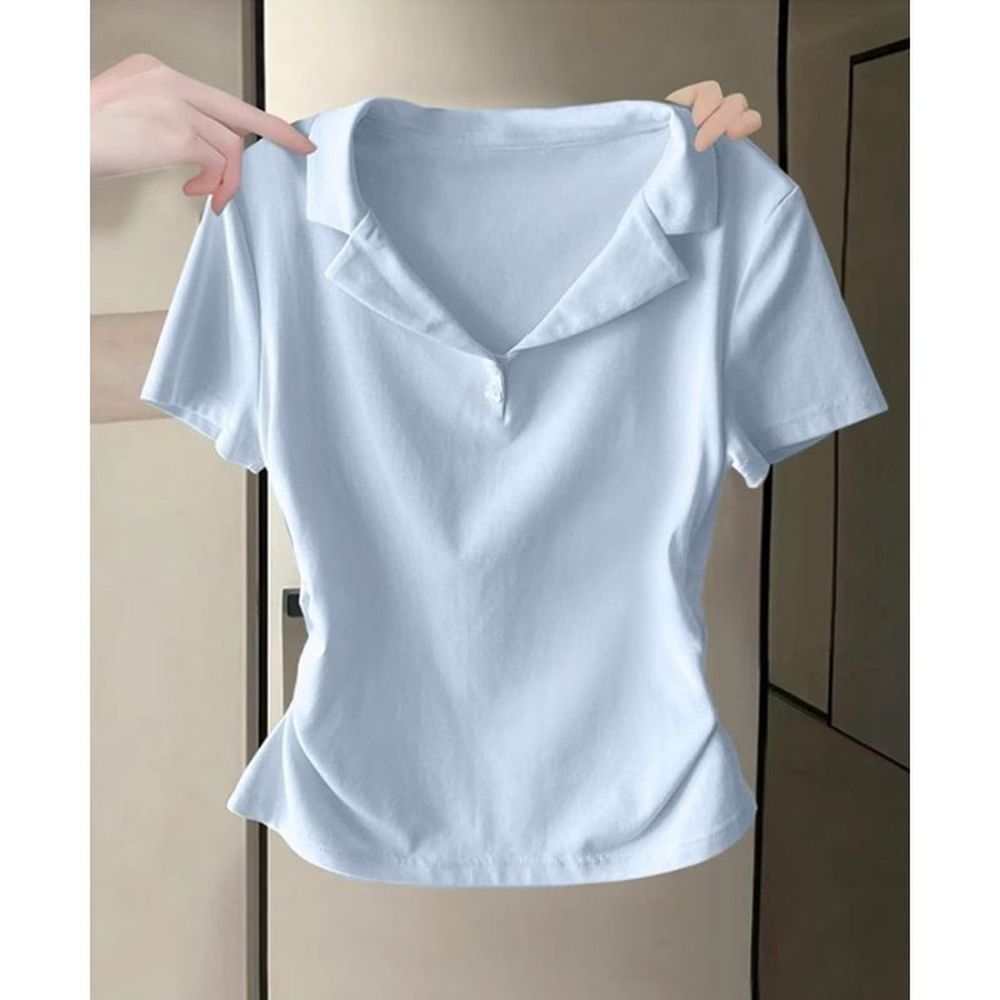 Square Neck Short Sleeve T-Shirt Slim Fit Cropped Top