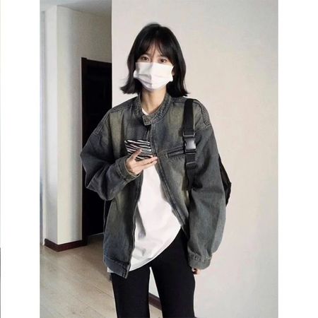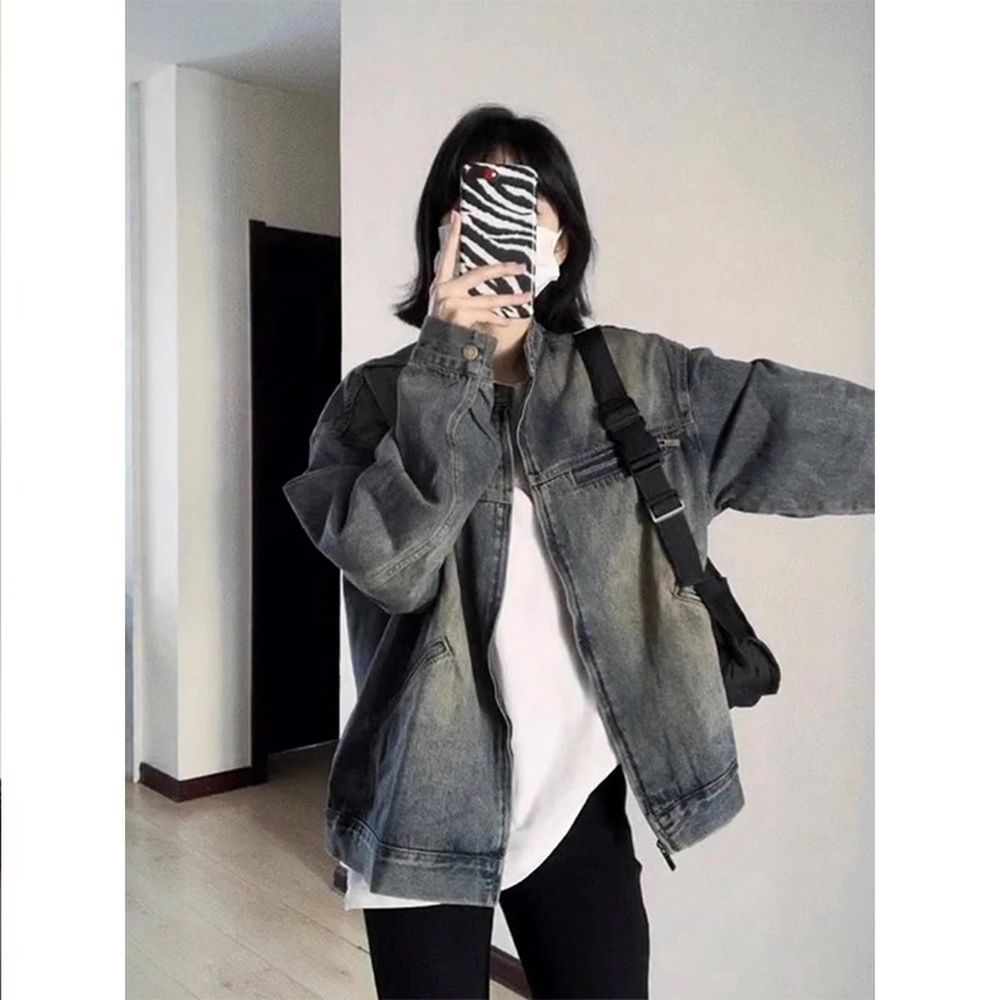 Retro BF Style Large Pocket Denim Jacket Women's Jacket Tops