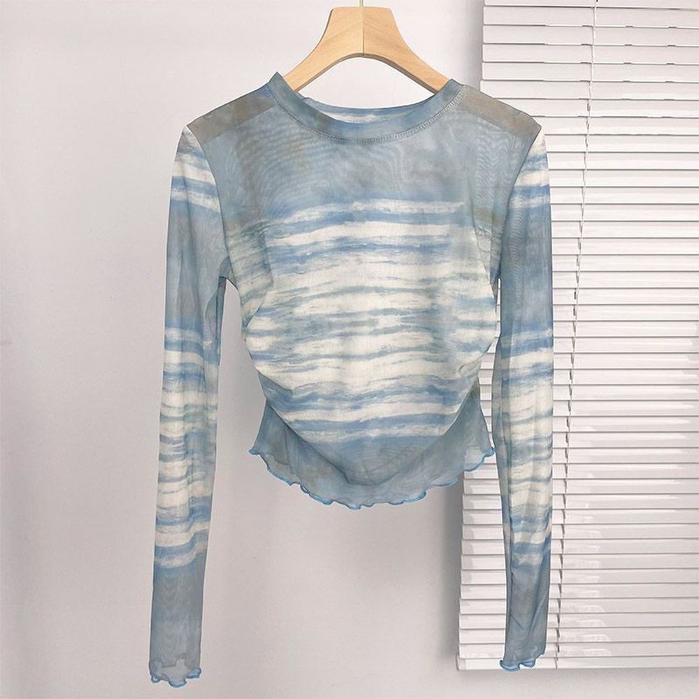 Slim-Fit Ruffled Sunscreen Short Top Women's Long-Sleeved T-Shirt