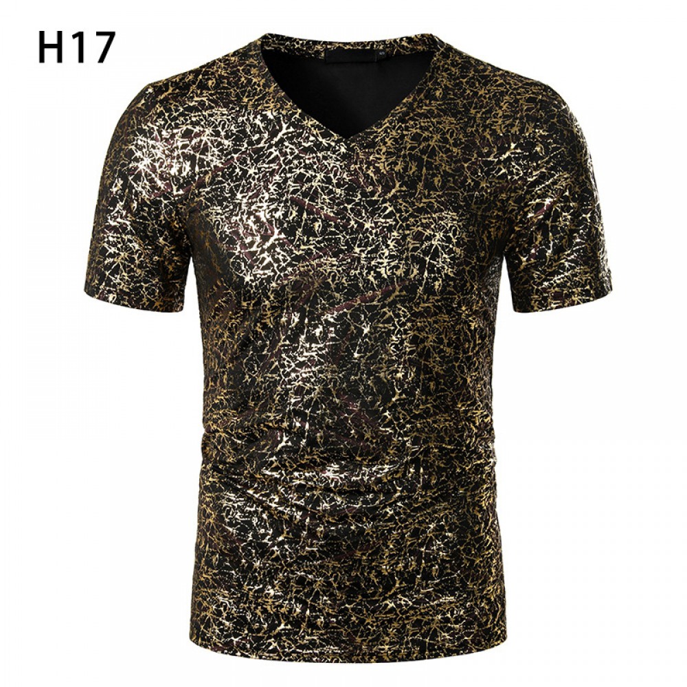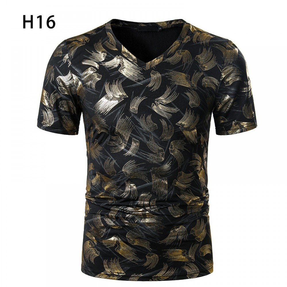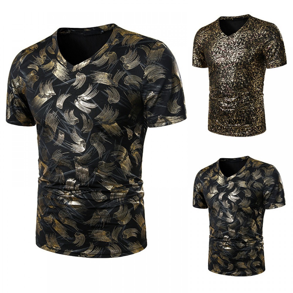 Summer Men's Nightclub Bar Fashion Casual Hot Stamping Printing Short-Sleeved Printed T-Shirt