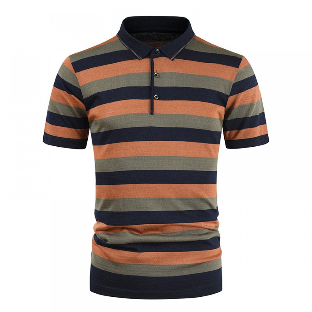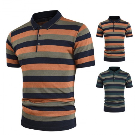 Men's Short-Sleeved T-Shirt Mens Contrast Striped Slim Casual T-Shirt