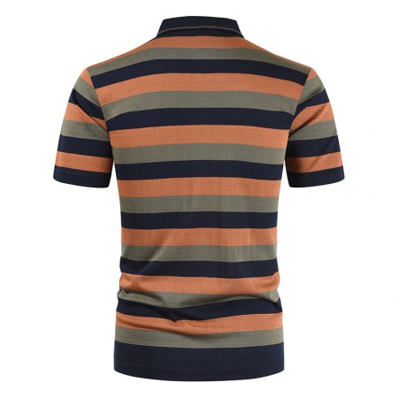 Summer New Men's Casual Loose T-Shirt Striped Color Matching Pocket Men's T-Shirts Short Sleeve
