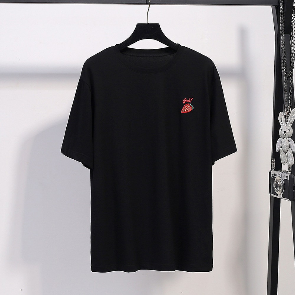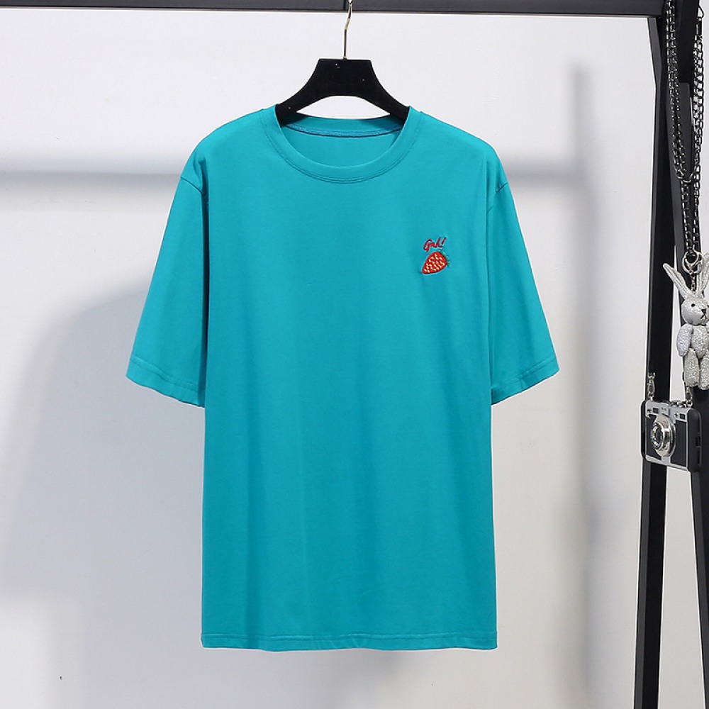 New Summer Plus Size Women's Slimming Top Fat Cartoon Embroidered Loose Short Sleeve T-Shirt