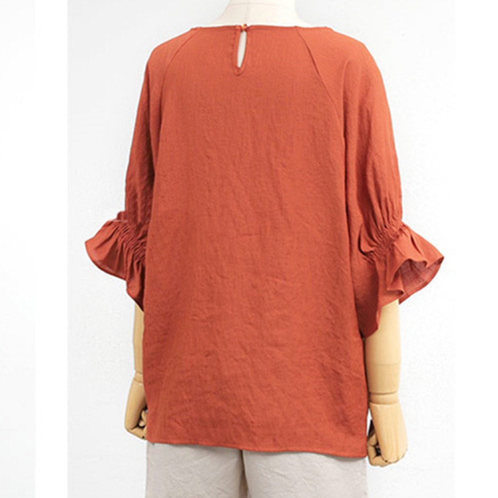 Summer New Style Cotton and Linen Short-Sleeved Shirt Hot Style Bundle Fold Mid-Sleeved T-Shirt Women