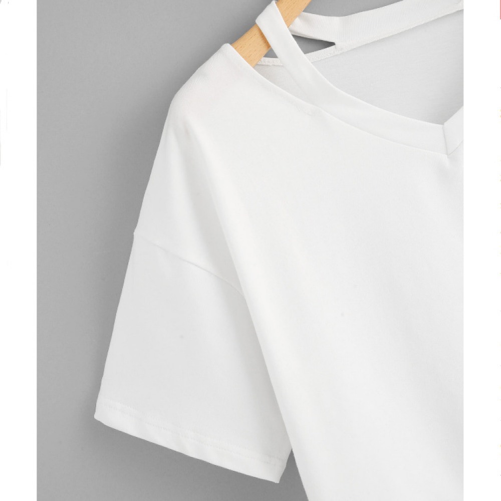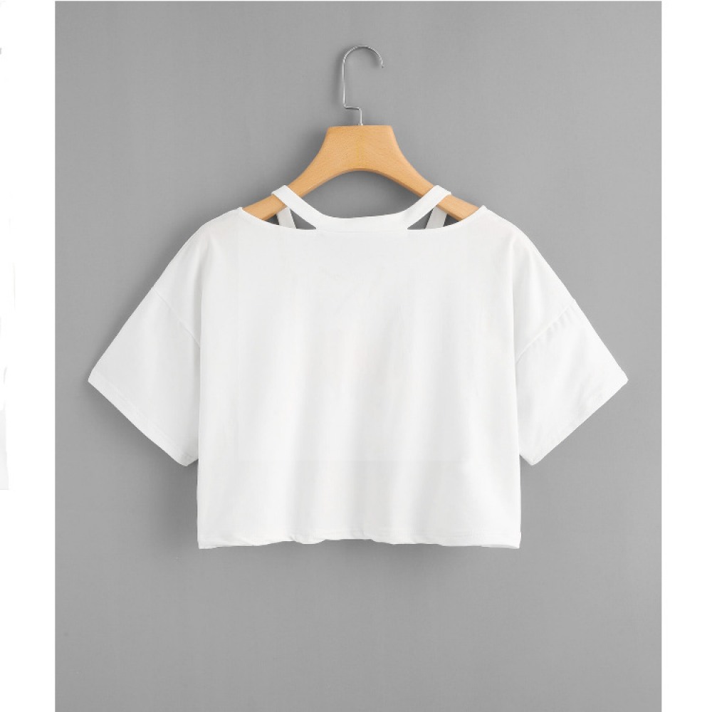 Women's White Round Neck Short Sleeve T-Shirt