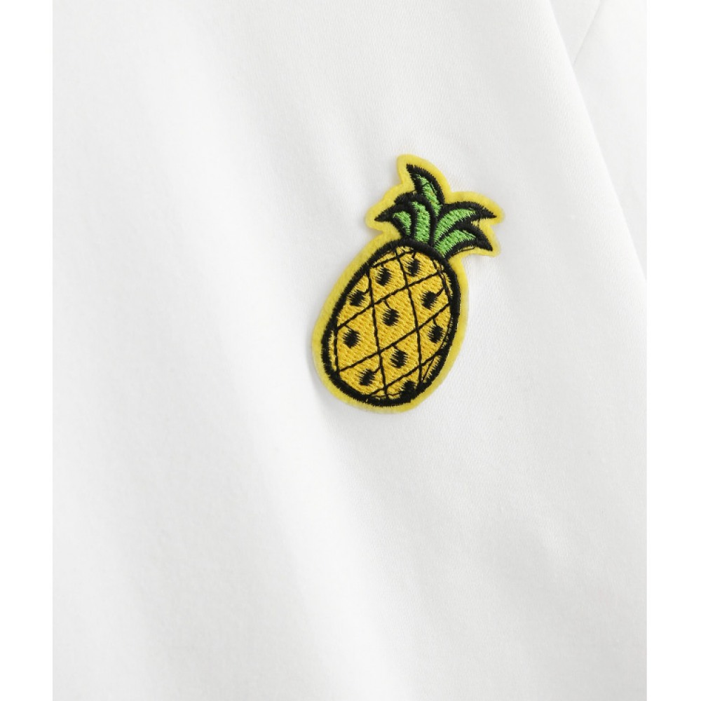 Summer New V-Neck Pineapple Applique Short Sleeve T-Shirt