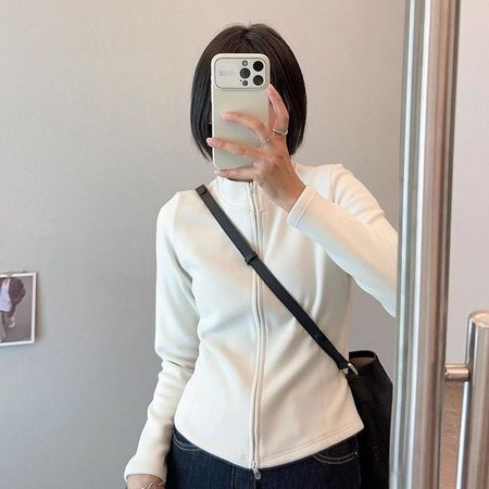 Casual Loose Stand Collar Jacket Women Zipper Cardigan Long Sleeve Jacket Top
