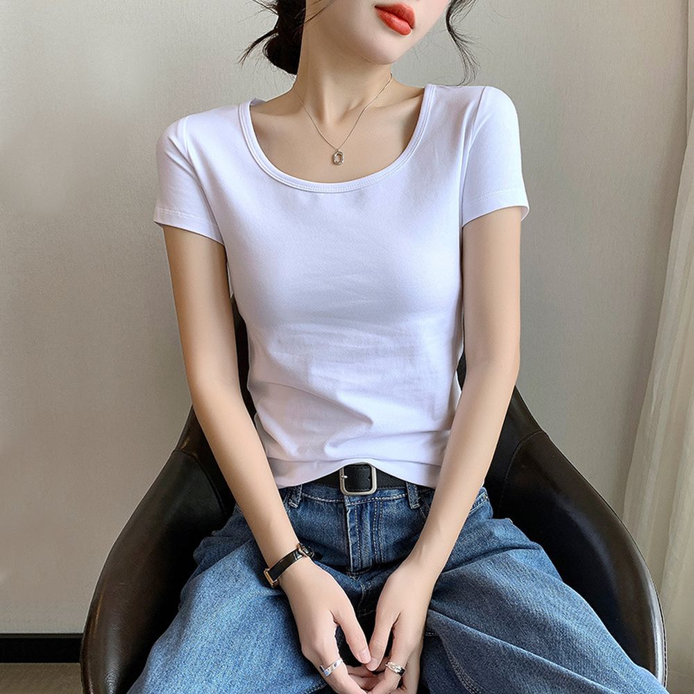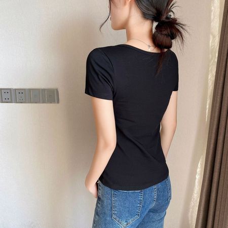 Summer New Style Rose Embroidery Lace All-Match Short T-Shirt Women